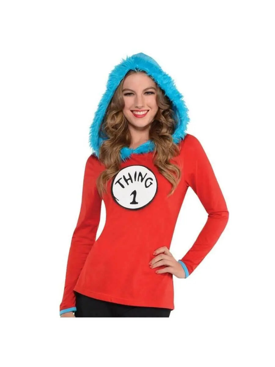 Dr. Seuss Thing 1& 2 Hooded Long Sleeve Top (Adult Small)