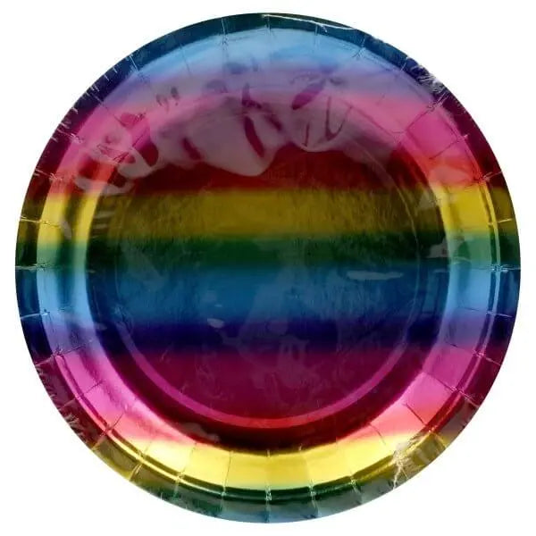 Transform your next party into a dazzling affair with the essential Rainbow Foil Dessert Plates in your collection.