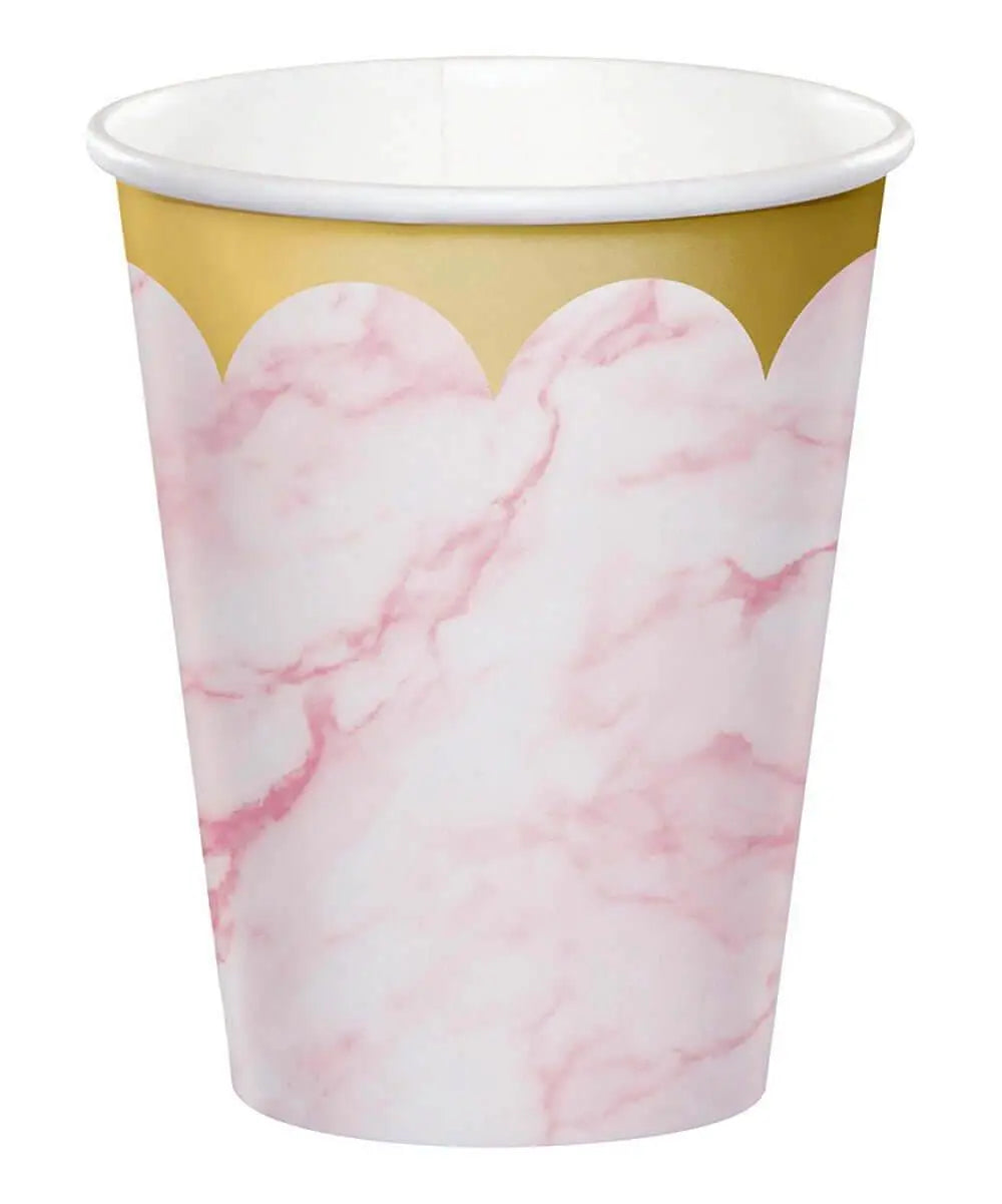 Oh Baby - 9oz Pink Marble Plastic Cups (8ct)