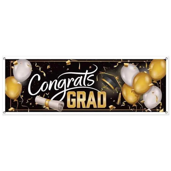 Celebrate your graduate's remarkable achievement with the Congrats Grad Sign Banner, a perfect addition to any graduation ceremony. Personalize this exquisite banner with your graduate's name and year, creating a unique touch for their memorable day.